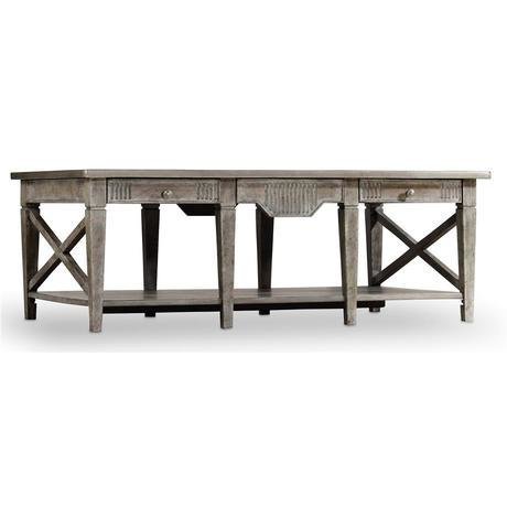 Великолепный журнальный стол из коллекции True Vintage. Столик оснащен тремя выдвижными ящиками и одной открытой полкой, которая прекрасно подойдет для хранения Ваших любимых книг и журналов. Модель изготовлена из древесины тополя, твердой породы дерева с применением шпона пекана и алюминия.