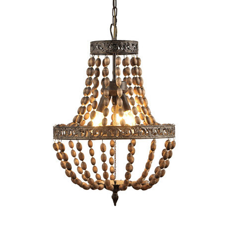 3-рожковая люстра ACORNS на основании из двух металлических рам разного диаметра. Рамы с орнаментом в виде листьев, стилизованы под литье. Люстра выполнена с элементами викторианского стиля: декор - деревянные бусы серо-коричневого цвета. Высота люстры регулируется за счет звеньев цепи. Объем — 0,080м3. Американский винтажный стиль. Количество лампочек: 3. Мощность: 3 x 40 Вт. Тип лампы: Накаливания, E14.